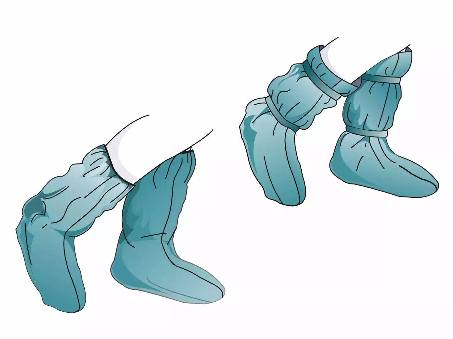 • Бахилы имеют высокую длину, покрывая ногу и часть голени, чтобы обеспечить полную защиту.