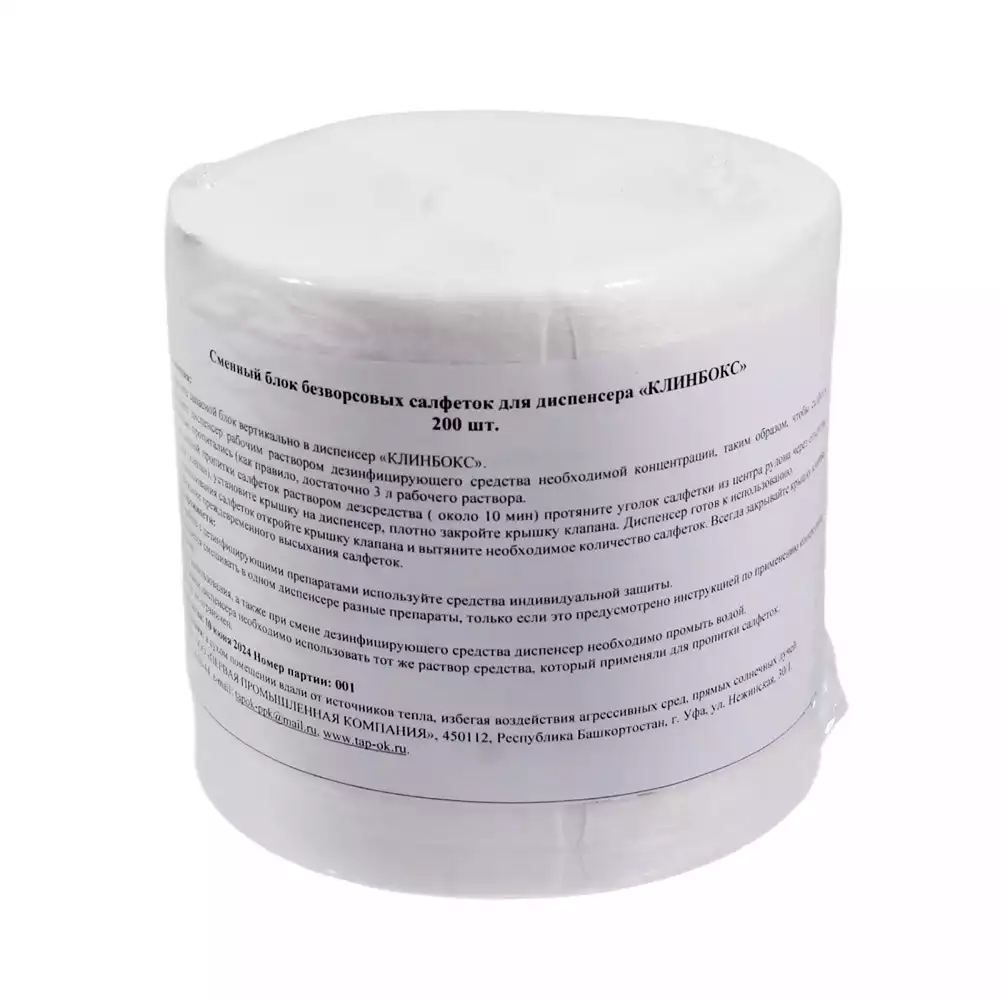 Салфетки безворсовые, размер 14*30см №200 сменный блок для диспенсера КЛИНБОКС (высота 14см), спанлейс 50г/м2, Первая промышленная компания (РОССИЯ)