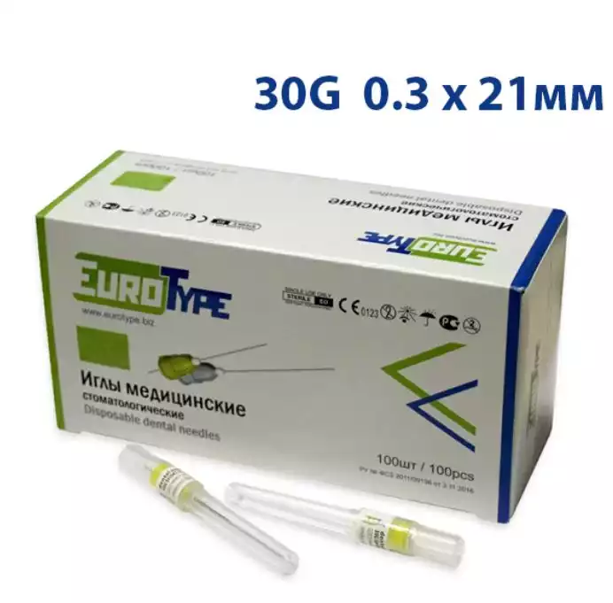 Иглы стоматологические (карпульные ЕвроТайп) 0.3X21мм (100шт), EuroTypeWenzhou Beipu Science &Technology Co., Ltd. (КИТАЙ)