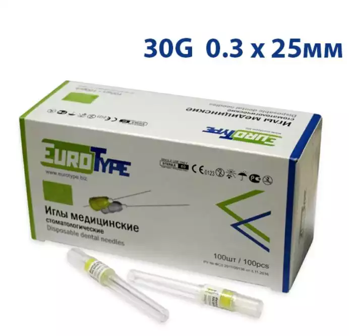 Иглы стоматологические (карпульные ЕвроТайп) 0.3X25мм (100шт), EuroTypeWenzhou Beipu Science &Technology Co., Ltd. (КИТАЙ)