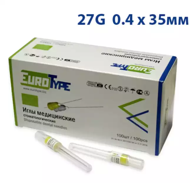 Иглы стоматологические (карпульные ЕвроТайп) 0.4X35мм (100шт), EuroTypeWenzhou Beipu Science &Technology Co., Ltd. (КИТАЙ)