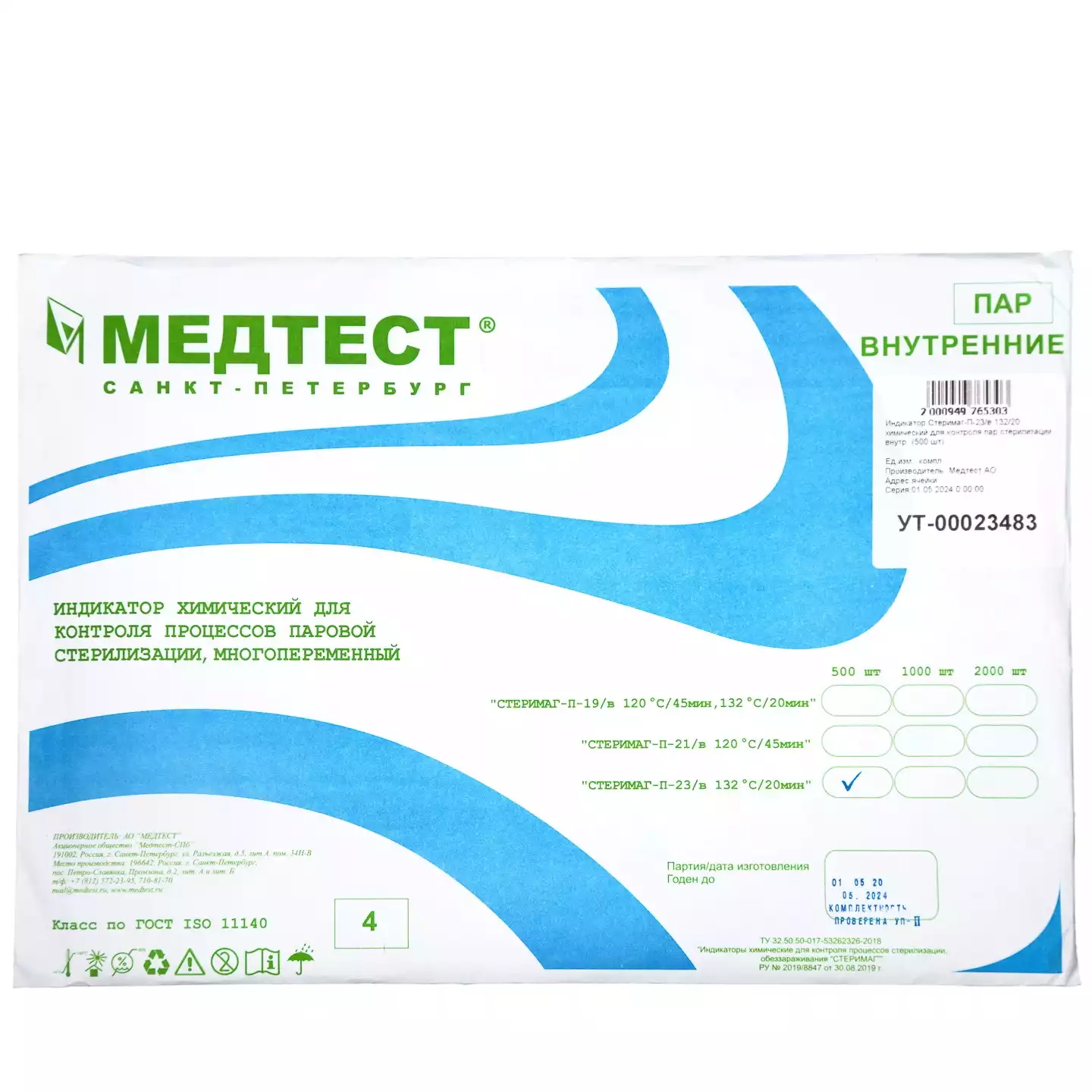 Индикатор Стеримаг-П-23/в 132/20 для контроля паровой стерилизации, внутренний, упаковка 500шт, Медтест АО