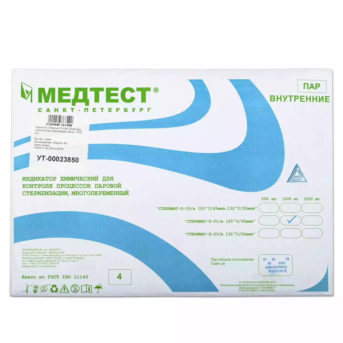 Индикатор Стеримаг-П-21/В 120/45 для контроля паровой стерилизации, внутренние, упаковка 1000 шт, Медтест АО