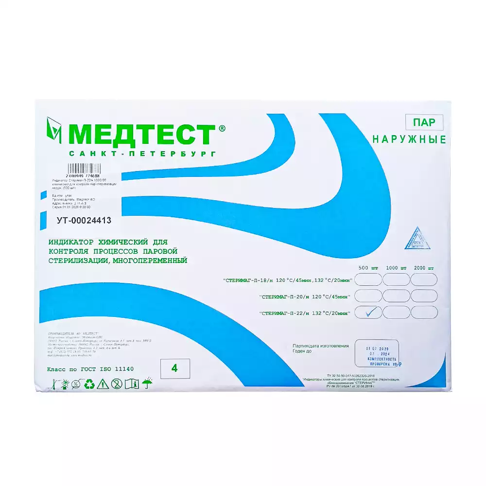 Индикатор Стеримаг-П-22/н 132С/20 химический для контроля пар.стерилизации, наруж. (500 шт), Медтест АО