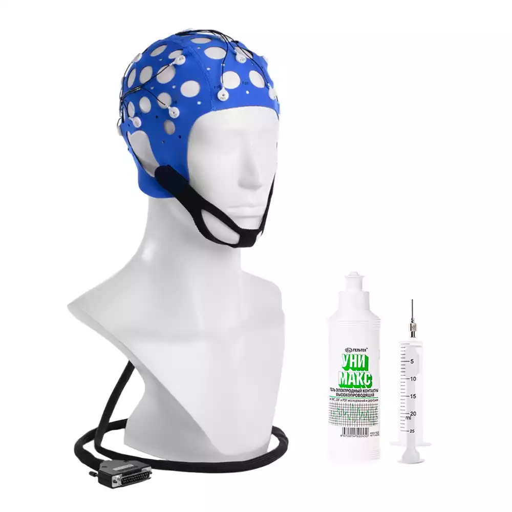 Шлемы, используемые в ЭЭГ и ТМС, предназначены для фиксации электродов на голове пациента, обеспечивая стабильный контакт и точность измерений. Шлемы могут быть разных размеров и конфигураций для обеспечения комфорта пациента и соответствия требованиям процедуры.