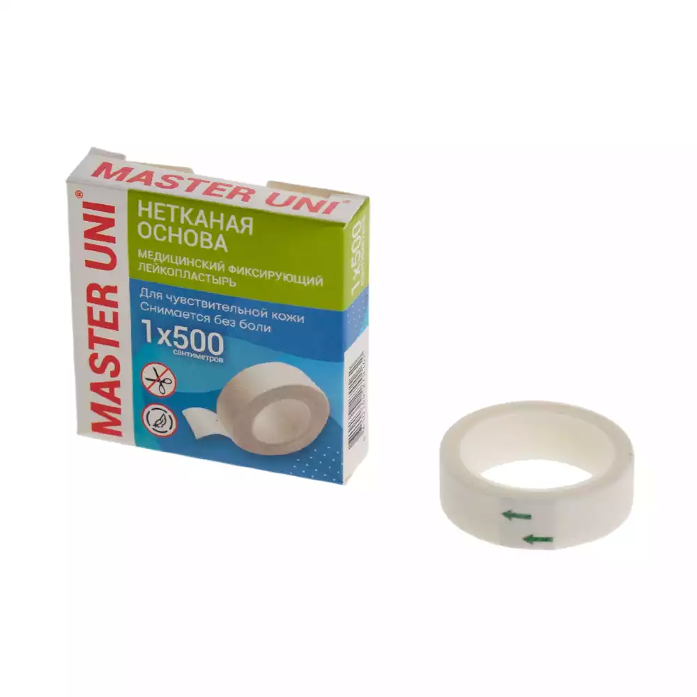 Лейкопластырь Master Uni на нетканой основе (целлюлоза), фиксирующий, размер 1см*500см, катушка в картонной коробке, ООО "ХЕЛСЛАБ" (РОССИЯ)