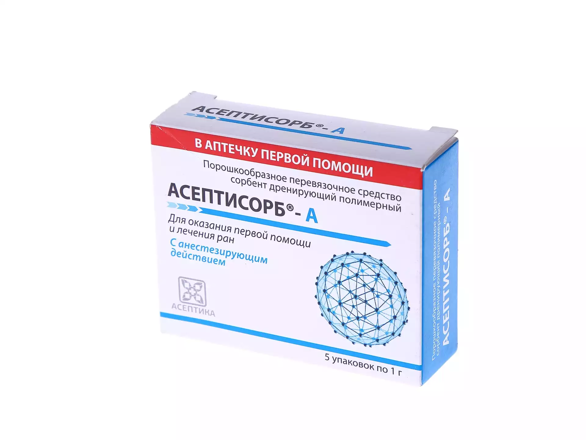 АСЕПТИСОРБ-А сорбент дренирующий полимерный стерильный, с местным анестетиком анилокаином, упаковка 5шт, Асептика М.К.