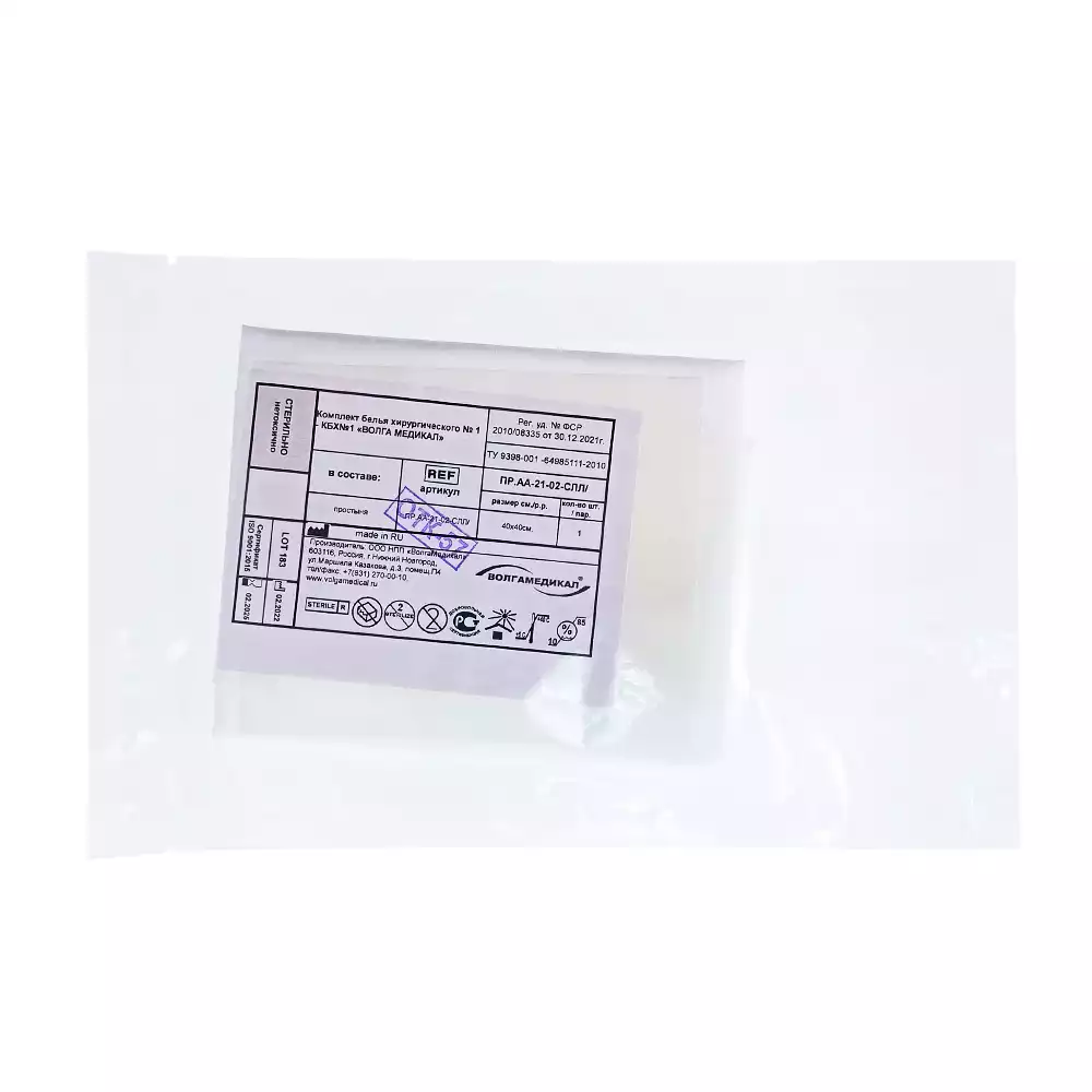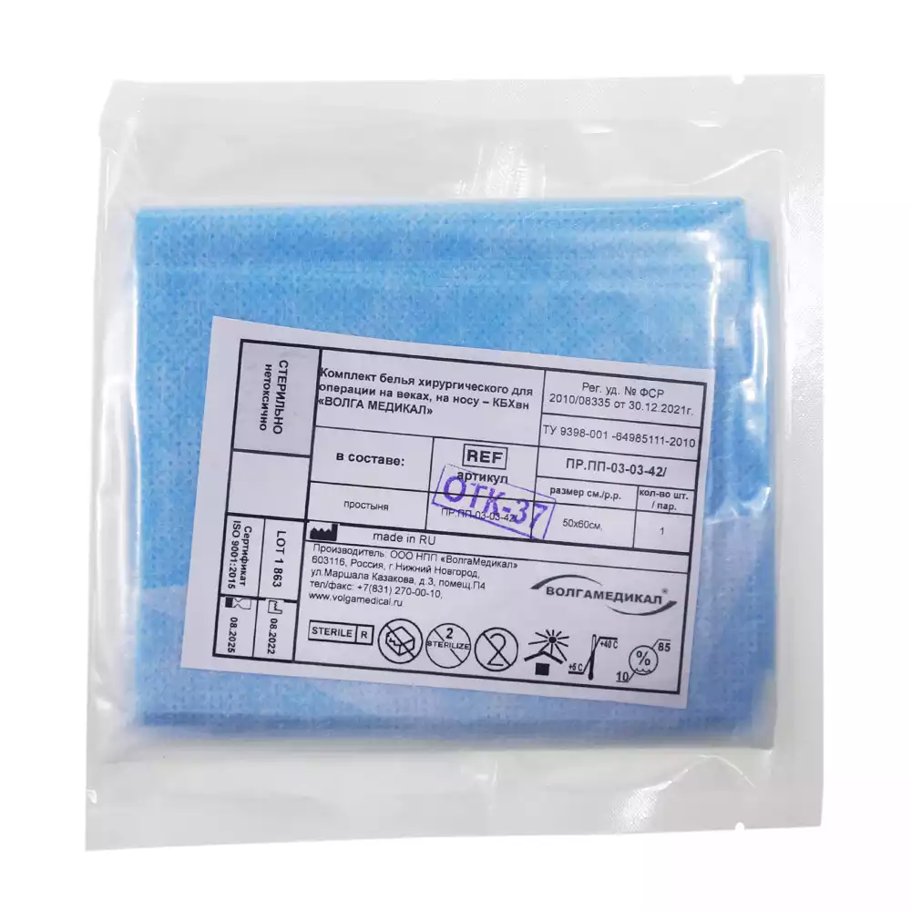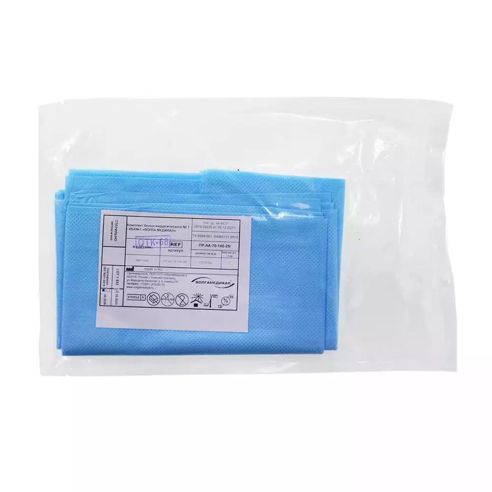 Простыня 70х80см, СМС 40г/м2 + ламинат, хирургическая, стерильная, голубая, Волга Медикал НПП (РОССИЯ)