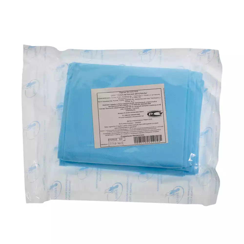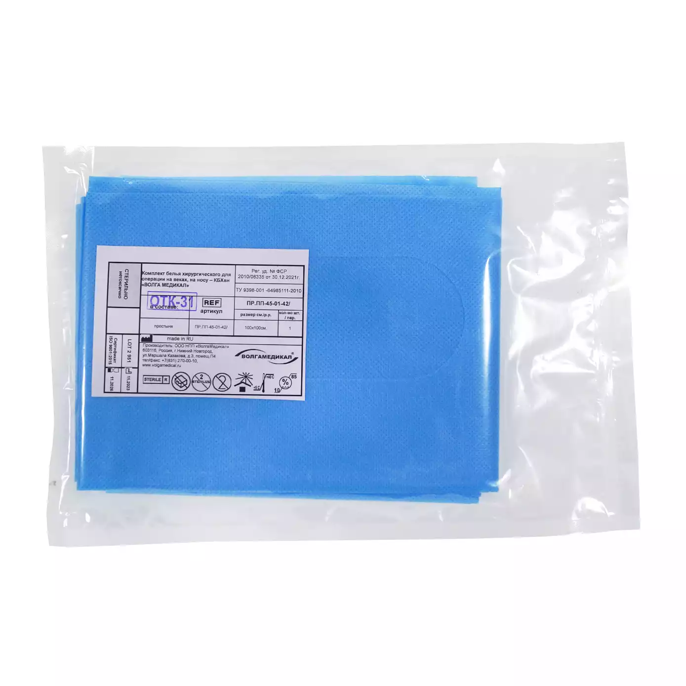 Простыня 140*200см, материал СМС 42г/м2, стерильная, голубая, Волга Медикал НПП (РОССИЯ)