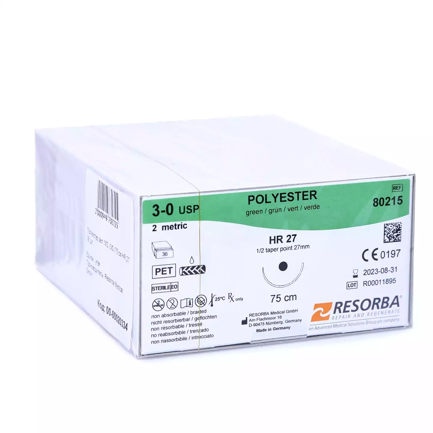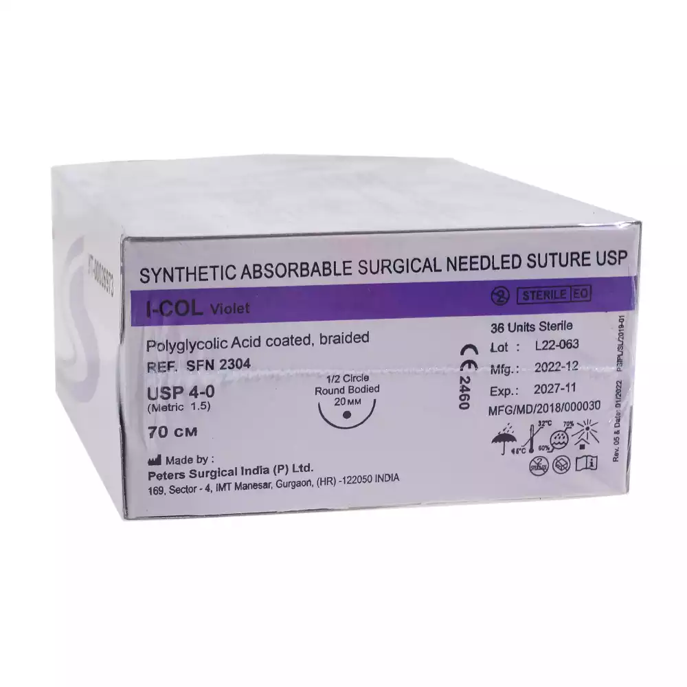 Ай- кол 3/0 (2), длина нити 70см, игла 1/2 круглая колющая 20мм, упаковка 36шт, SFN2437, Peters Surgical (ИНДИЯ)