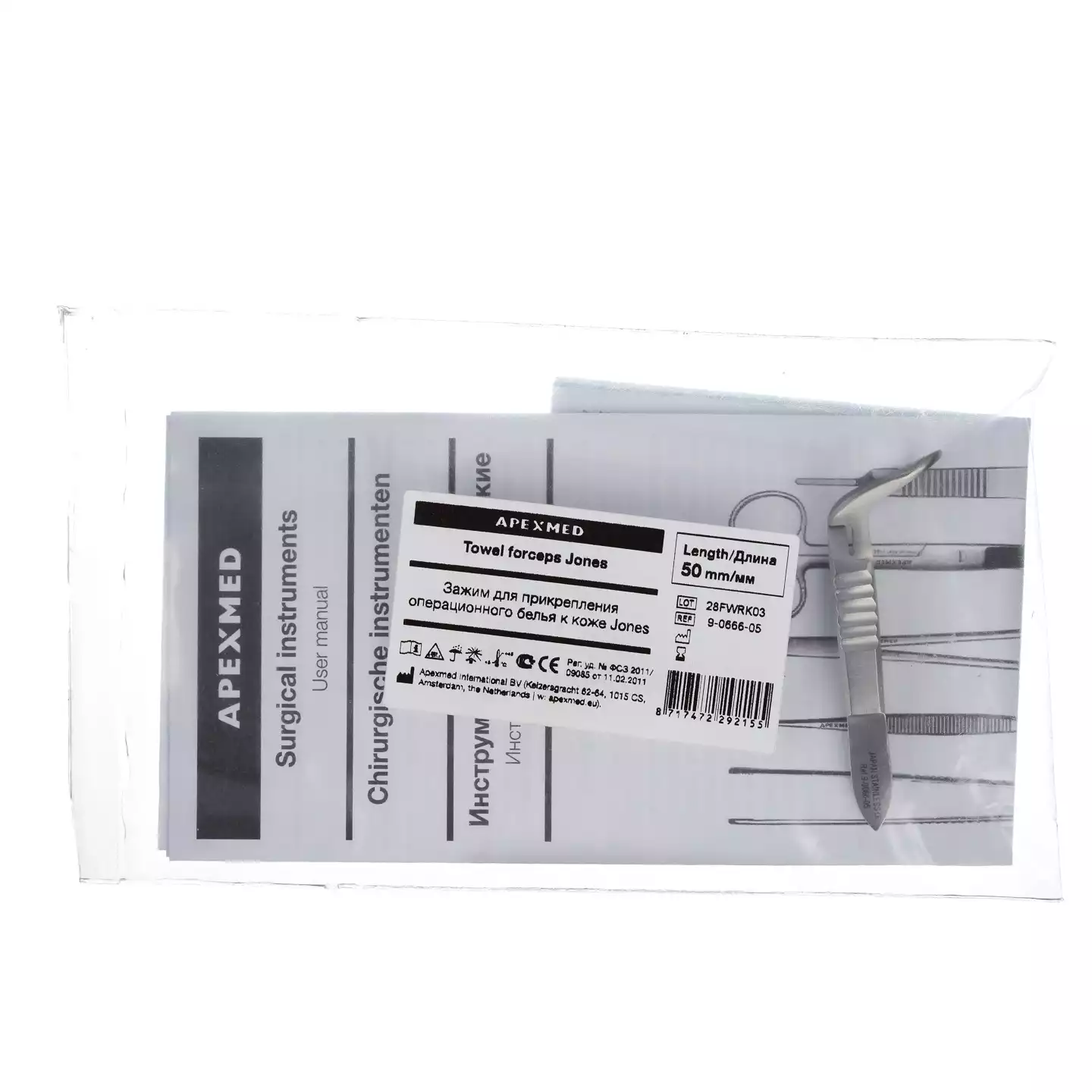 Зажим Аллиса (цапка) для прикрепления операционного белья к коже Jones, длина 50 мм, Apexmed International (КИТАЙ)