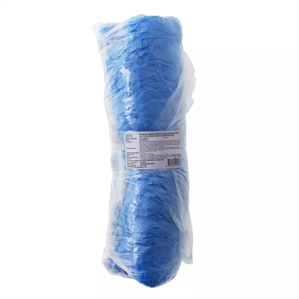 Бахилы UNITE "Оптимал" ПНД 32мкм, полиэтиленовые, гладкие, вес 3,2 гр/пара, размер 400*150мм, цвет - синий, 25 пар