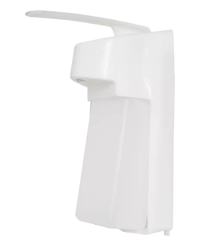 Дозатор выдает средство при нажатии на привод локтем, что позволяет избежать прямого контакта кожи рук с поверхностью дозатора.