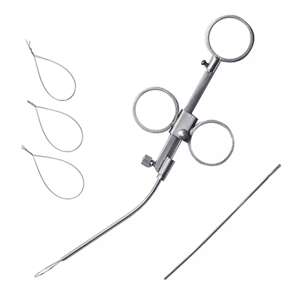 - Эргономичность. За счет удобной рукоятки с 2 кольцами, петля комфортно лежит в руке врача. Легкий контроль над захватом, удержанием и выведением нароста из ушной полости.