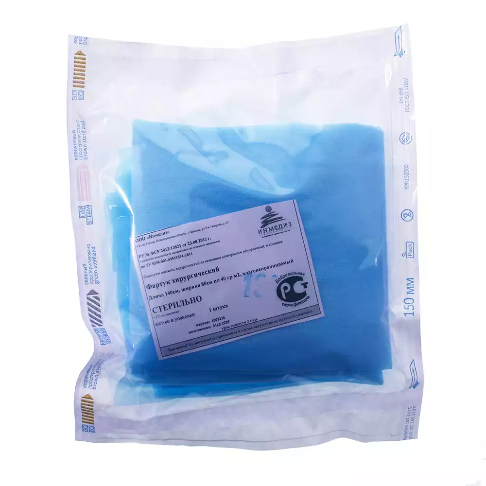 Фартук хирургический, размер 80*140см, материал ламинированный смс 40г/м2, стерильный