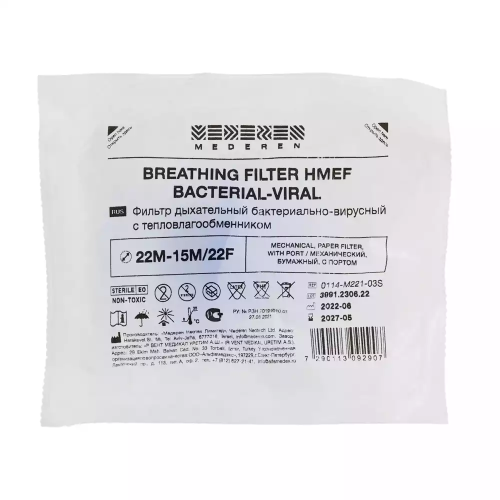 Фильтр дыхательный, тепловлагообменный (бумага), коннектор 22F/15M, 22M/15F