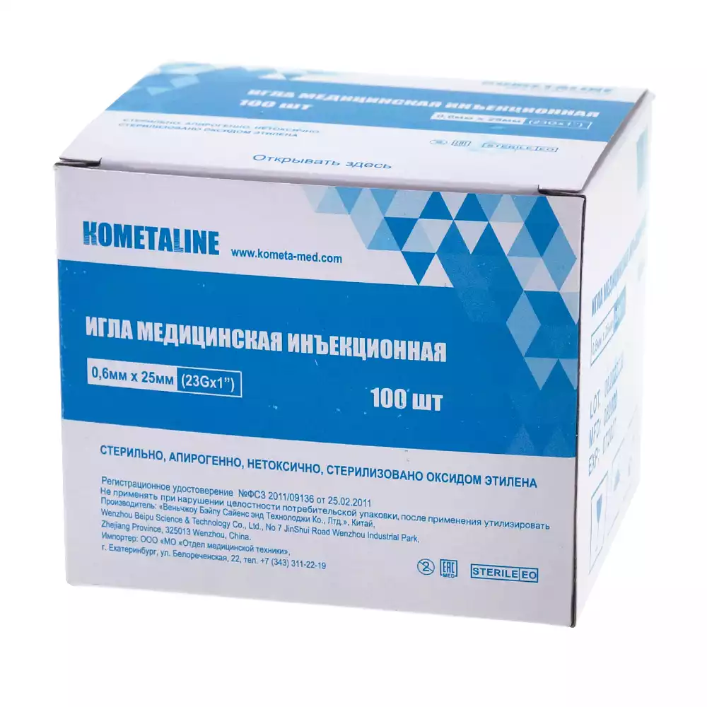 Игла инъекционная 23G (0,6х25мм), тонкая стенка, стерильная, синяя