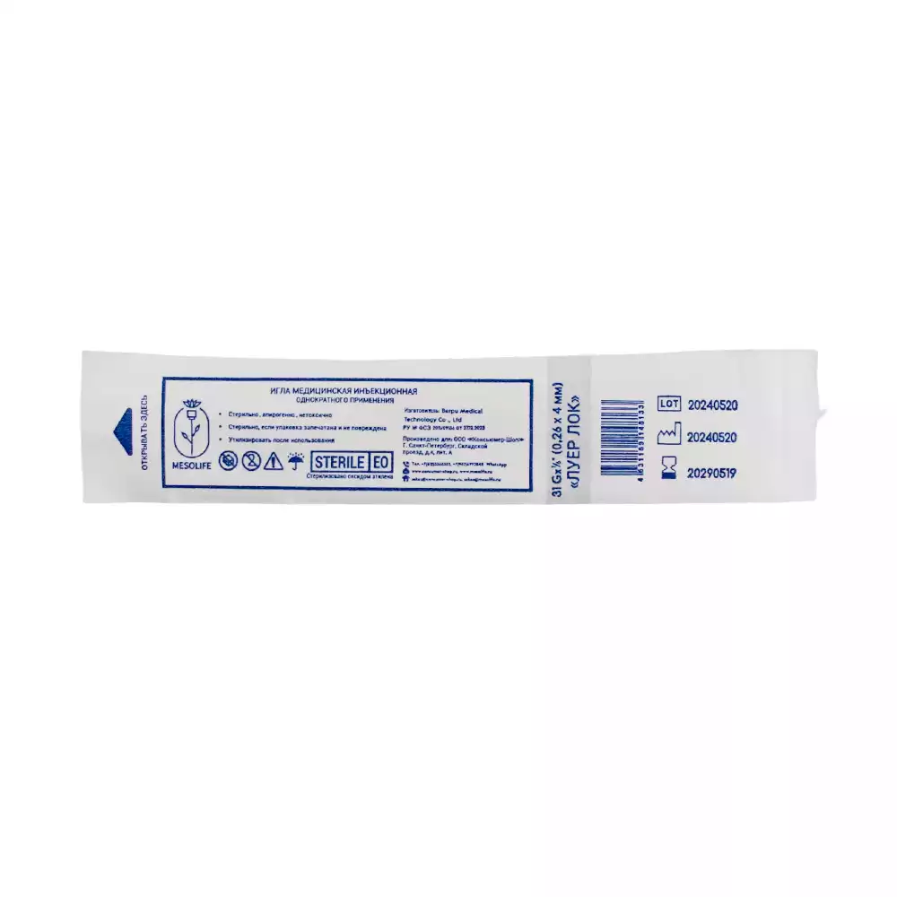 Игла MESOLIFE для микроинъекций, размер 31G (0,26*4мм), стерильная, белая