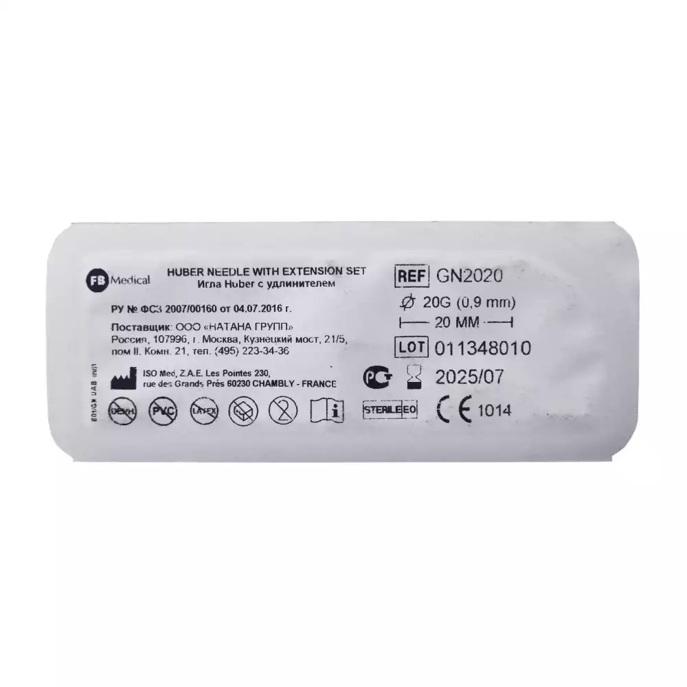 Игла Губера ONKO-GRIP 20G, диаметр 0,9мм, длина 20мм, прямая, с удлинителем, без Y-коннектора, стерильная, фиолетовая
