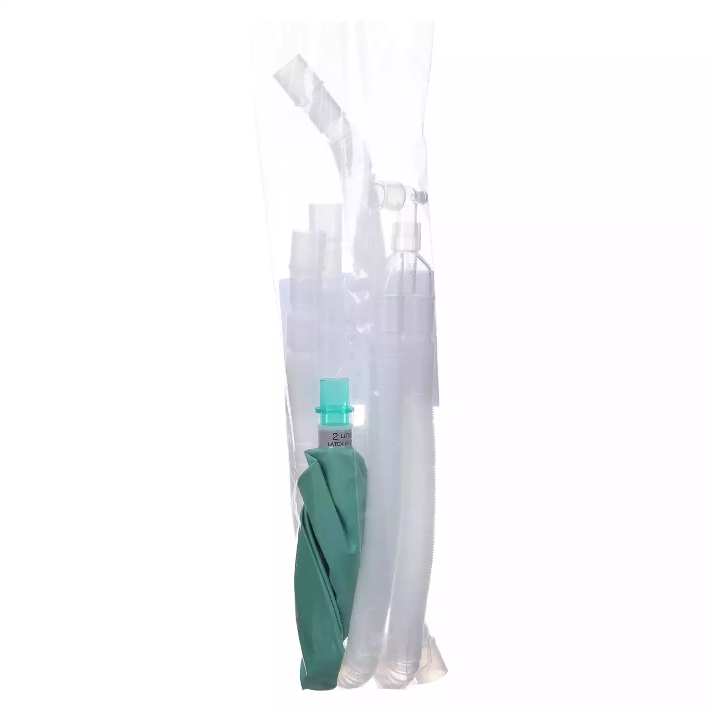 Контур анестезиологический 22 мм, растяжимый, линия вдоха и линия выдоха от 60 до 180 см, разъемы со стороны аппарата 22F, Y-образный тройник с разъемами 22М/15F без портов, угловой коннектор с капнографическим портом, дополнительная линия от 45 см до 120 см, мешок 2 литра.