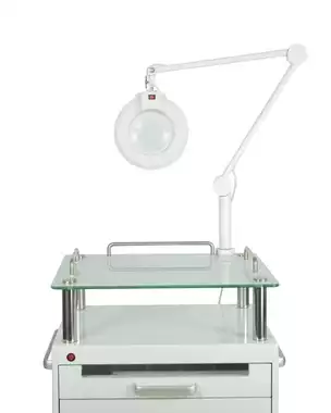 Профессиональная лампа-лупа с кронштейном для использования в косметологических кабинетах.