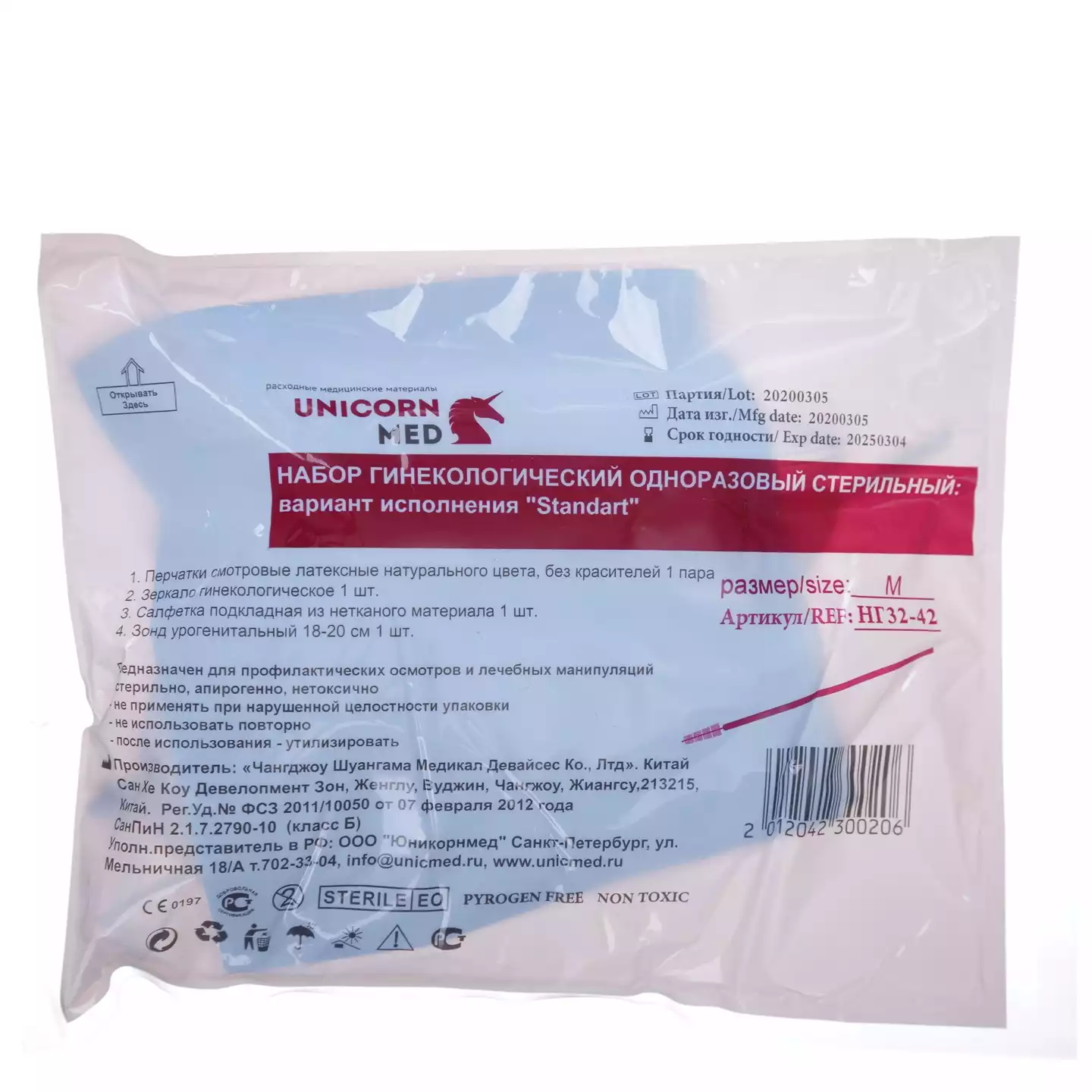 Набор гинекологический Standart, размер M (зеркало по Куско прозразное ЦПФ, салфетка 60*70см, перчатки неопуд., щитощетка) стерильный