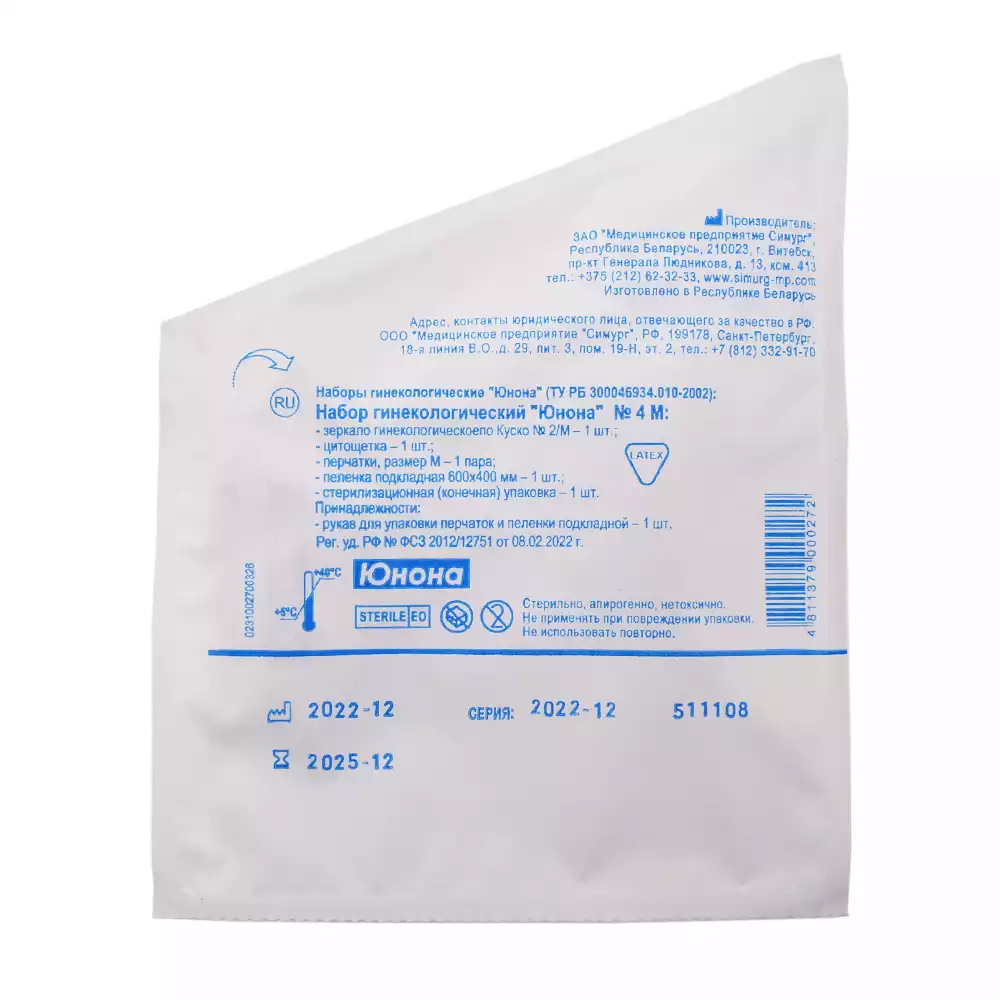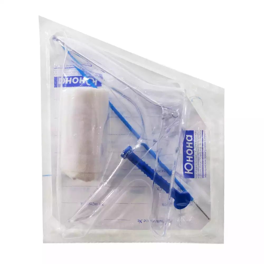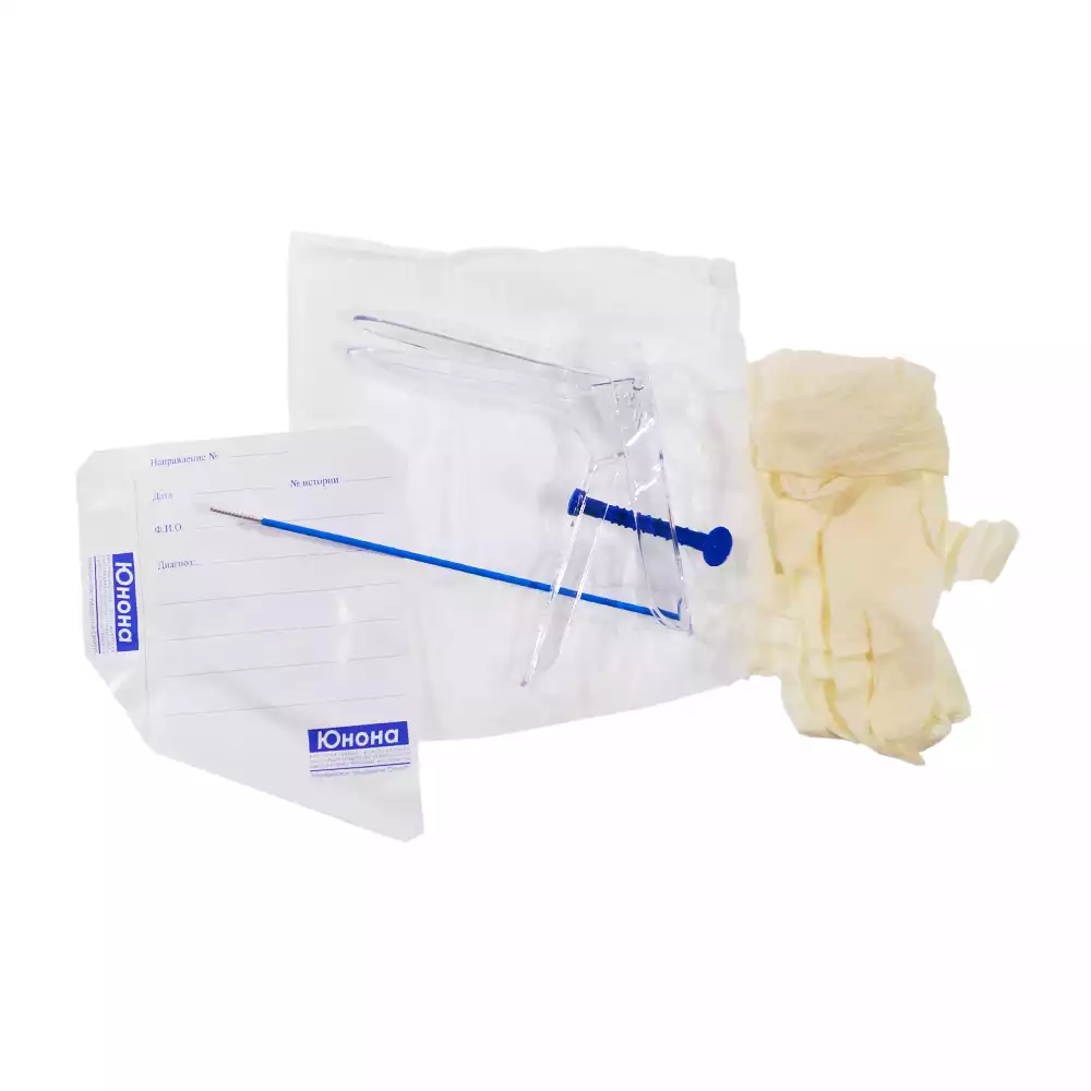 Набор гинекологический Юнона №4М (зеркало по Куско №2, салфетка 40*60см, перчатки опудр. р-р М, цитощетка), одноразоый, стерильный, упаковка блистер