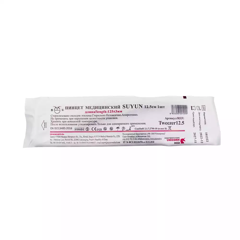Пинцет медицинский одноразовый стерильный - предназначен для захватывания перевязочных материалов, ватных и марлевых тампонов, во время лечебных процедур, профилактических осмотров. Стерильный, предназначен для однократного применения.
