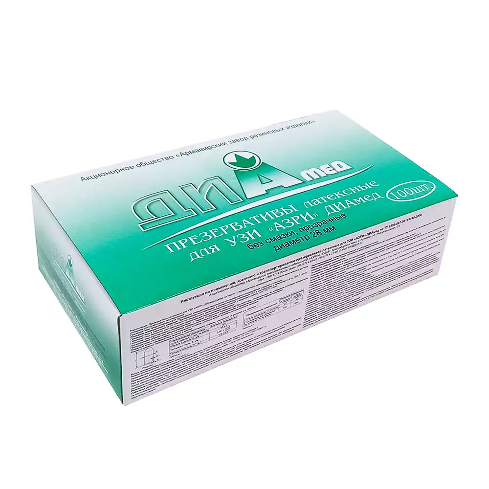 Презерватив для УЗИ "АЗРИ" (без смазки, без накопителя) прозрачный, диаметр 28мм, одноразовый, 100 шт