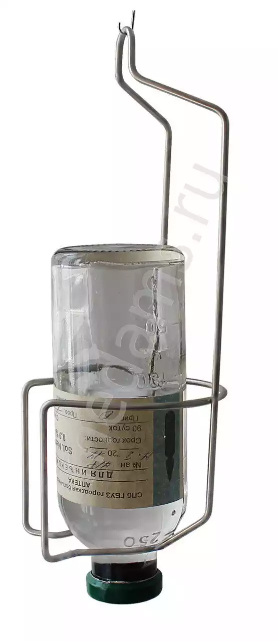 Держатель универсален: подходит как для для стандартных стеклянных флаконов, так и для пластиковых пакетов и флаконов.