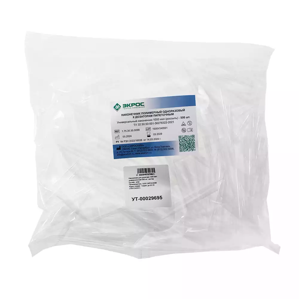 Наконечник ЭКРОСХИМ для дозатора 100-1000 мкл универсальный 500 шт, нестерильные